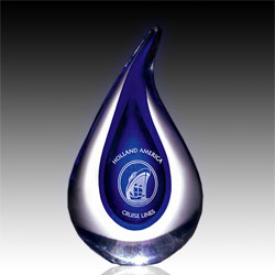 | Teardrop Art Glass Award Our Teardrop Art Glass Award has the very distinct look of a Teardrop, and is a very substantial award. Each blue drop is unique, and may vary slightly in color and size. Your personalization is etched right on the front of this award.
